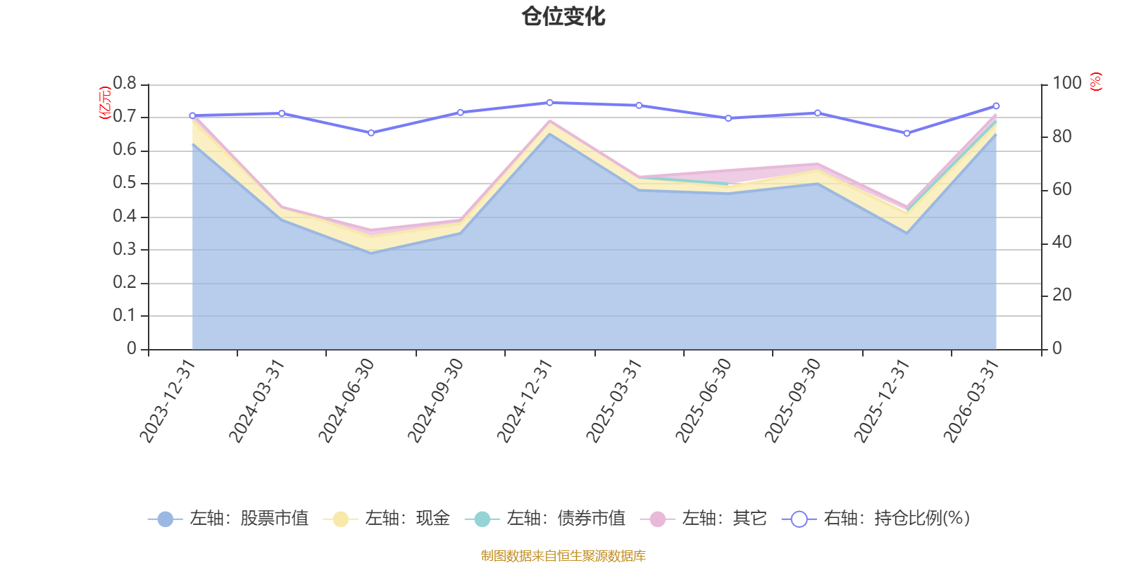 据定期报告数据统计,成立以来平均股票仓位为88.37%,同类平均为86.67%。2024年末基金达到93.17%的最高仓位,2025年末最低,为81.57%。