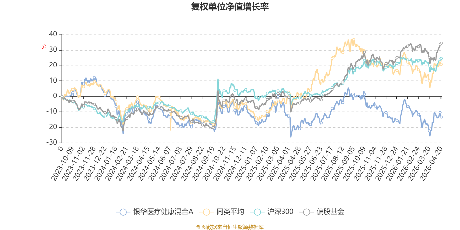 截至4月20日,银华医疗健康混合A近三个月复权单位净值增长率为-6.35%,位于同类可比基金90/106;近半年复权单位净值增长率为-7.15%,位于同类可比基金84/106;近一年复权单位净值增长率为10.14%,位于同类可比基金86/104。