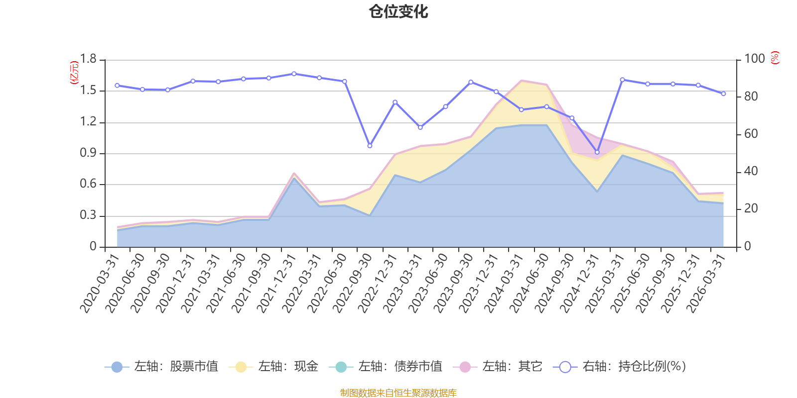 据定期报告数据统计,近三年平均股票仓位为78.78%,同类平均为84.02%。2021年末基金达到92.49%的最高仓位,2024年末最低,为50.62%。