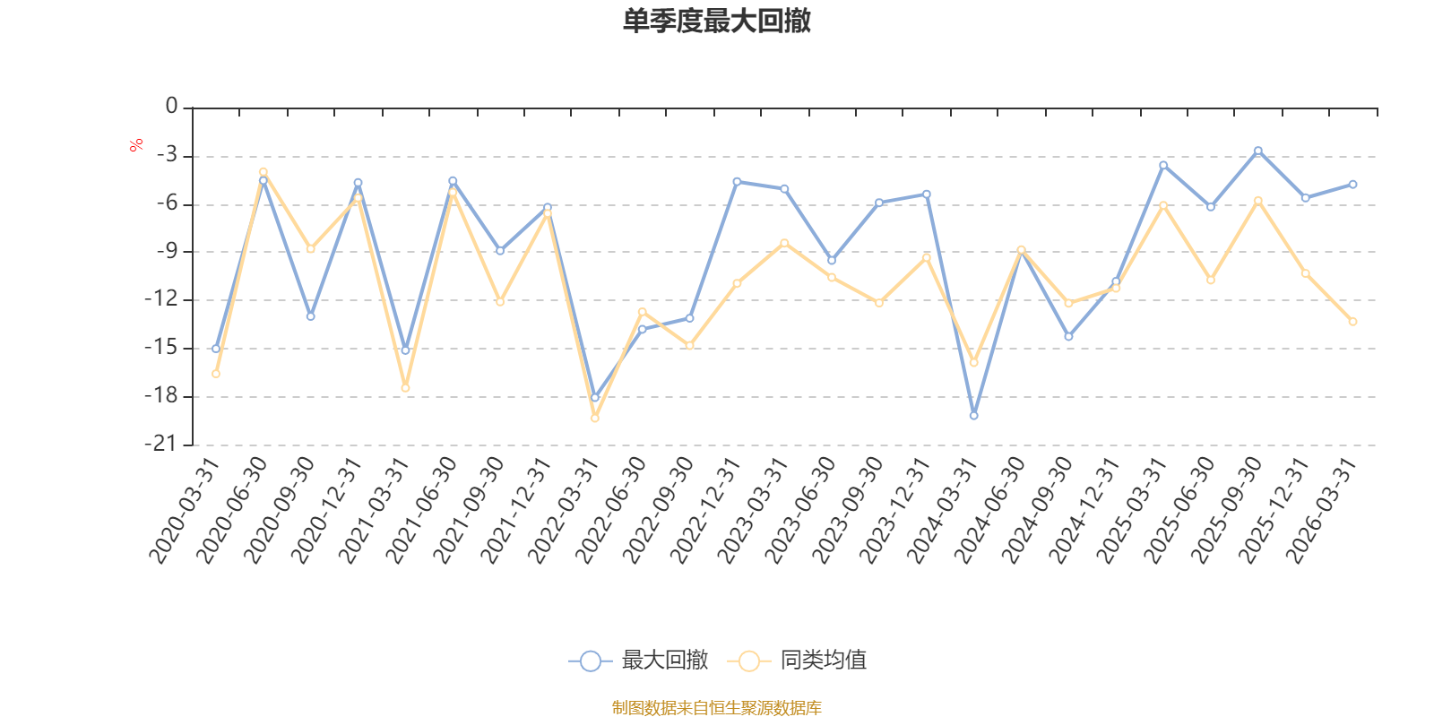 截至4月20日,基金近三年最大回撤为21.88%,同类可比基金排名44/395。单季度最大回撤出现在2024年一季度,为19.17%。
