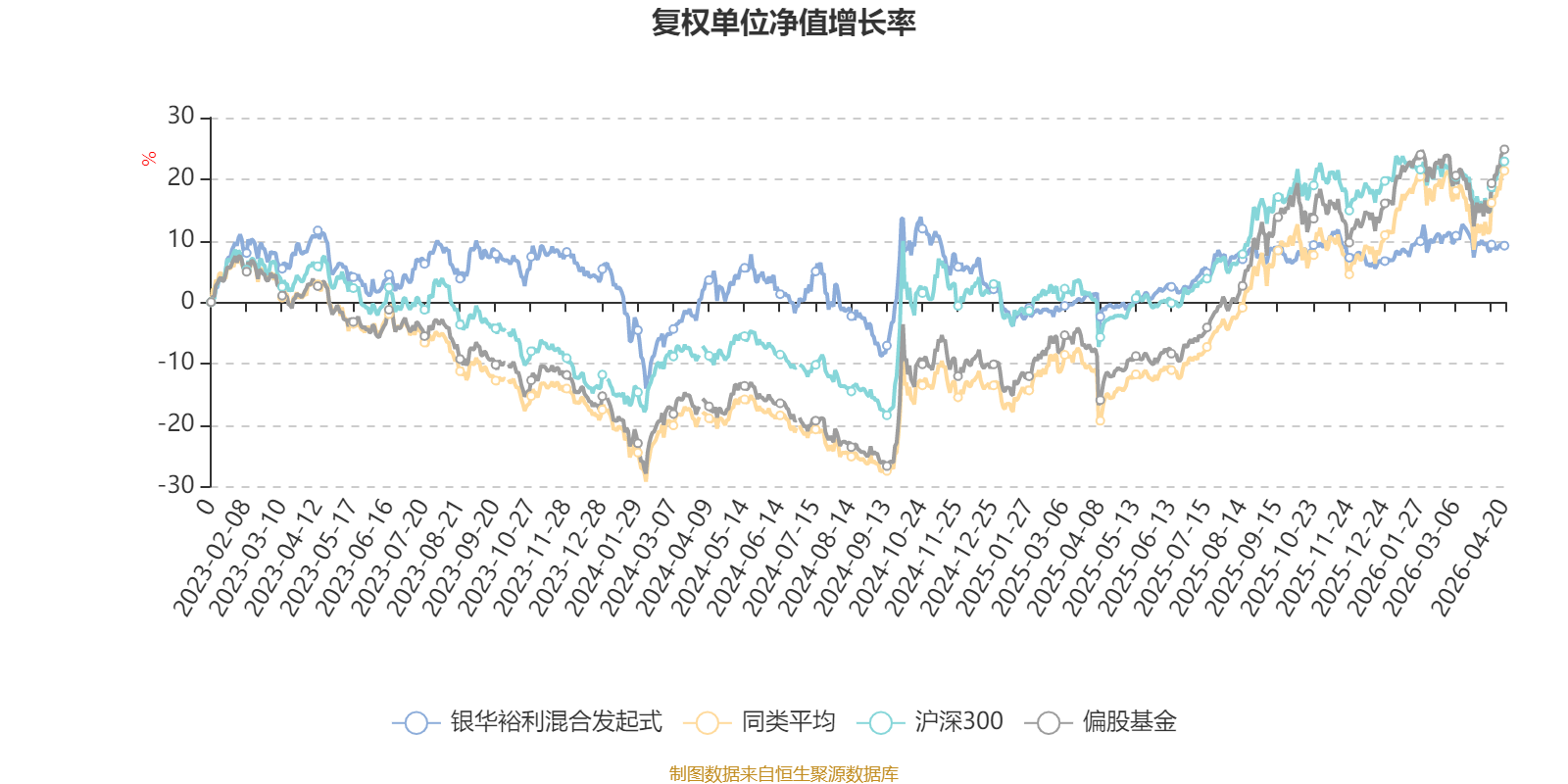 截至4月20日,银华裕利混合发起式近三个月复权单位净值增长率为-0.22%,位于同类可比基金393/689;近半年复权单位净值增长率为1.23%,位于同类可比基金541/689;近一年复权单位净值增长率为10.10%,位于同类可比基金614/685;近三年复权单位净值增长率为-0.41%,位于同类可比基金317/422。