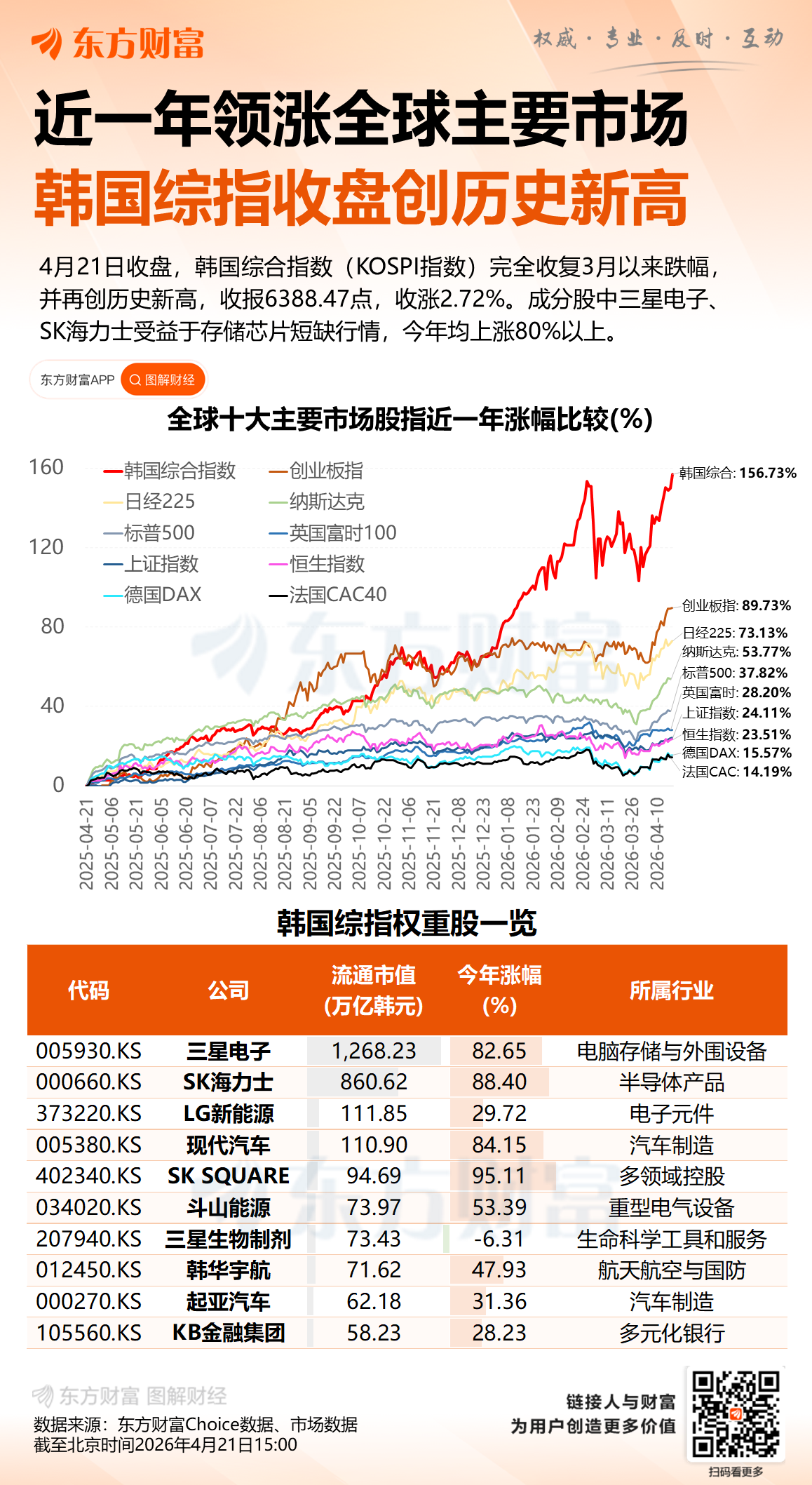 领涨全球 韩国综指收盘再创历史新高!一图速览世界主要市场股指表现