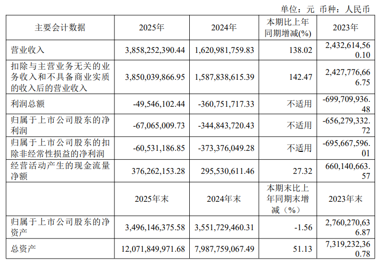 4月20日,城地香江(603887)披露2025年年度报告。2025年,公司实现营业总收入38.58亿元,同比增长138.02%;归母净利润亏损6706.5万元,上年同期亏损3.45亿元;扣非净利润亏损6053.12万元,上年同期亏损3.73亿元;经营活动产生的现金流量净额为3.76亿元,同比增长27.32%。