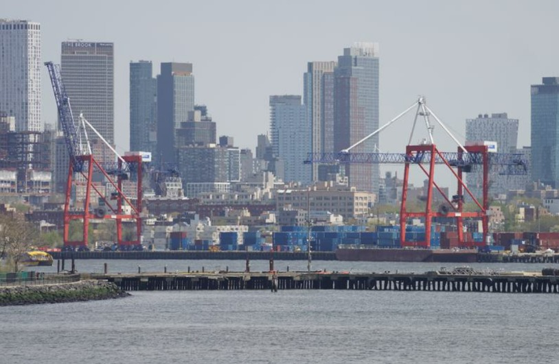 美国纽约和新泽西港集装箱码头,这是美国东北部最大的贸易和货物进出口中心。新华社图