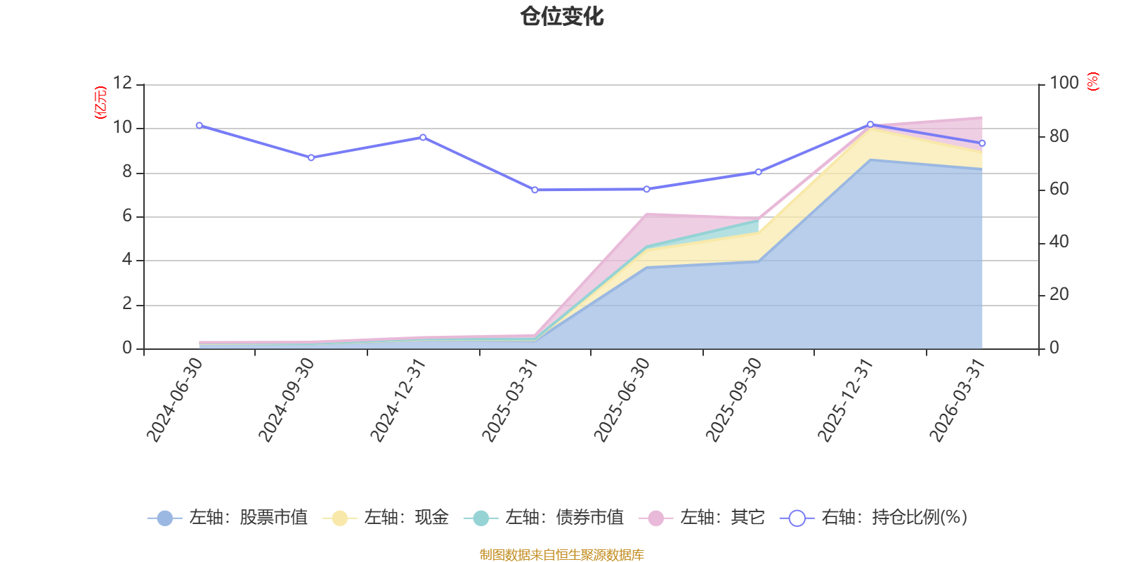 据定期报告数据统计,成立以来平均股票仓位为73.32%,同类平均为85.8%。2025年末基金达到84.86%的最高仓位,2025年一季度末最低,为60.08%。