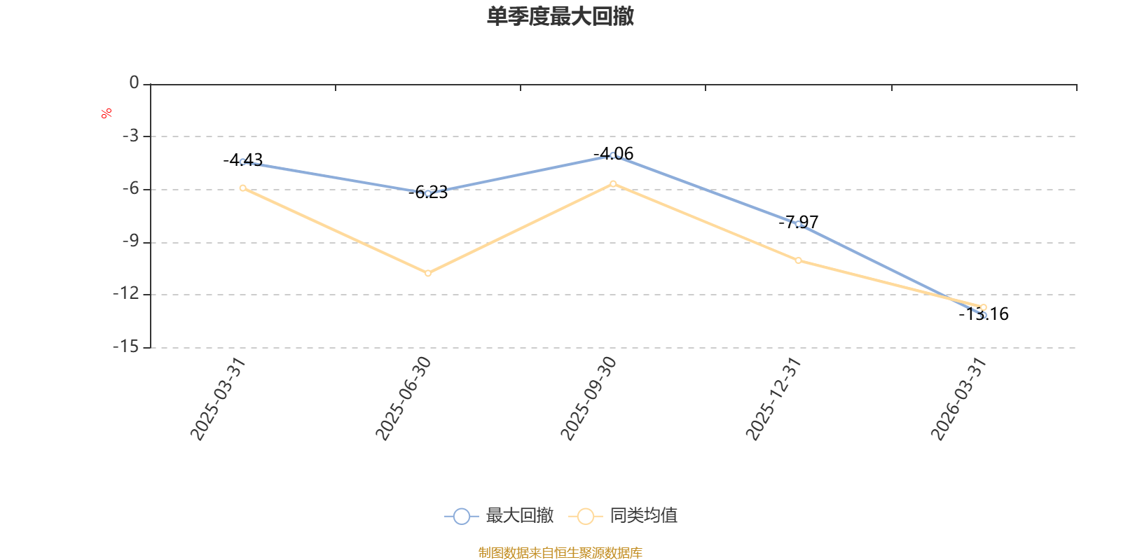 截至4月20日,基金成立以来最大回撤为13.32%。单季度最大回撤出现在2026年一季度,为13.16%。