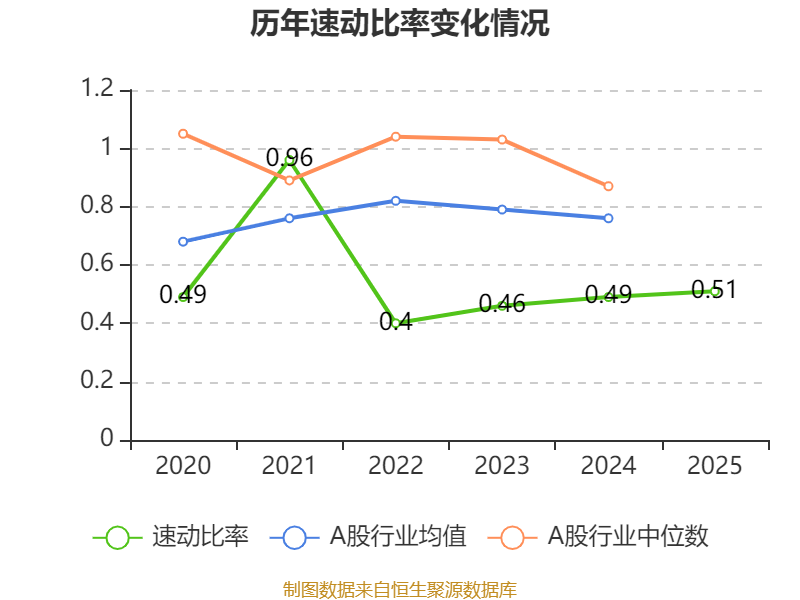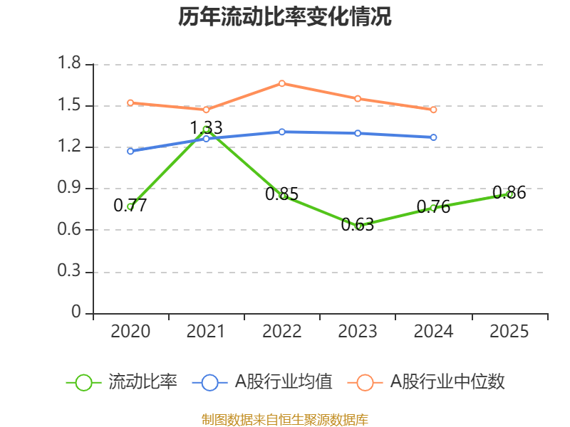 2025年,公司流动比率为0.86,速动比率为0.51。