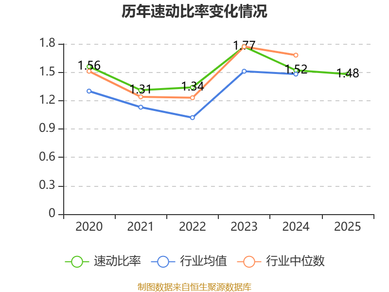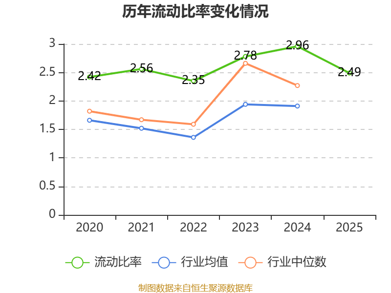2025年,公司流动比率为2.49,速动比率为1.48。