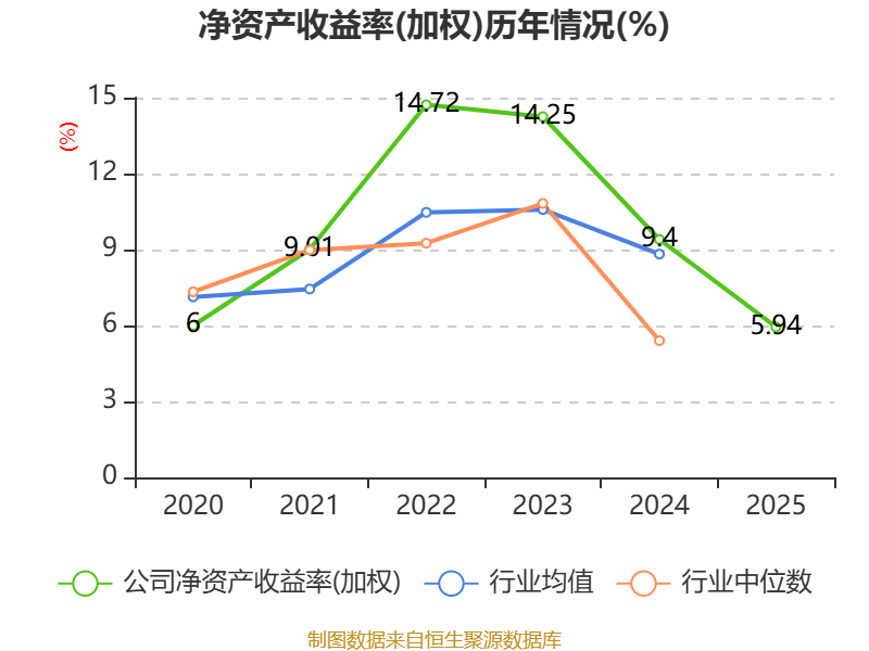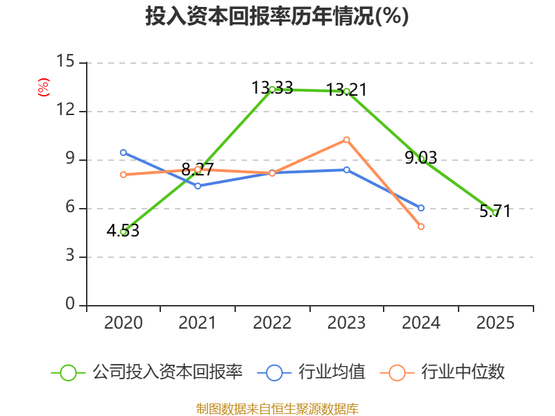 数据显示,2025年公司加权平均净资产收益率为5.94%,较上年同期下降3.46个百分点。公司2025年投入资本回报率为5.71%,较上年同期下降3.32个百分点。