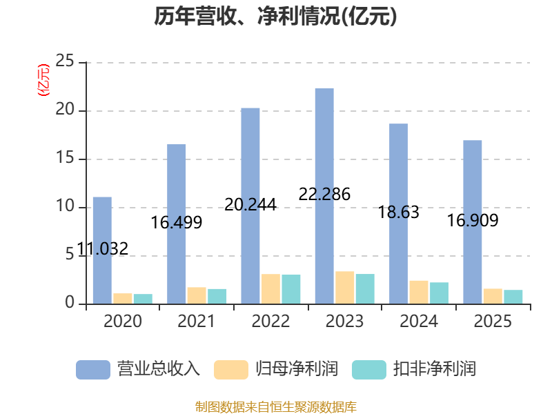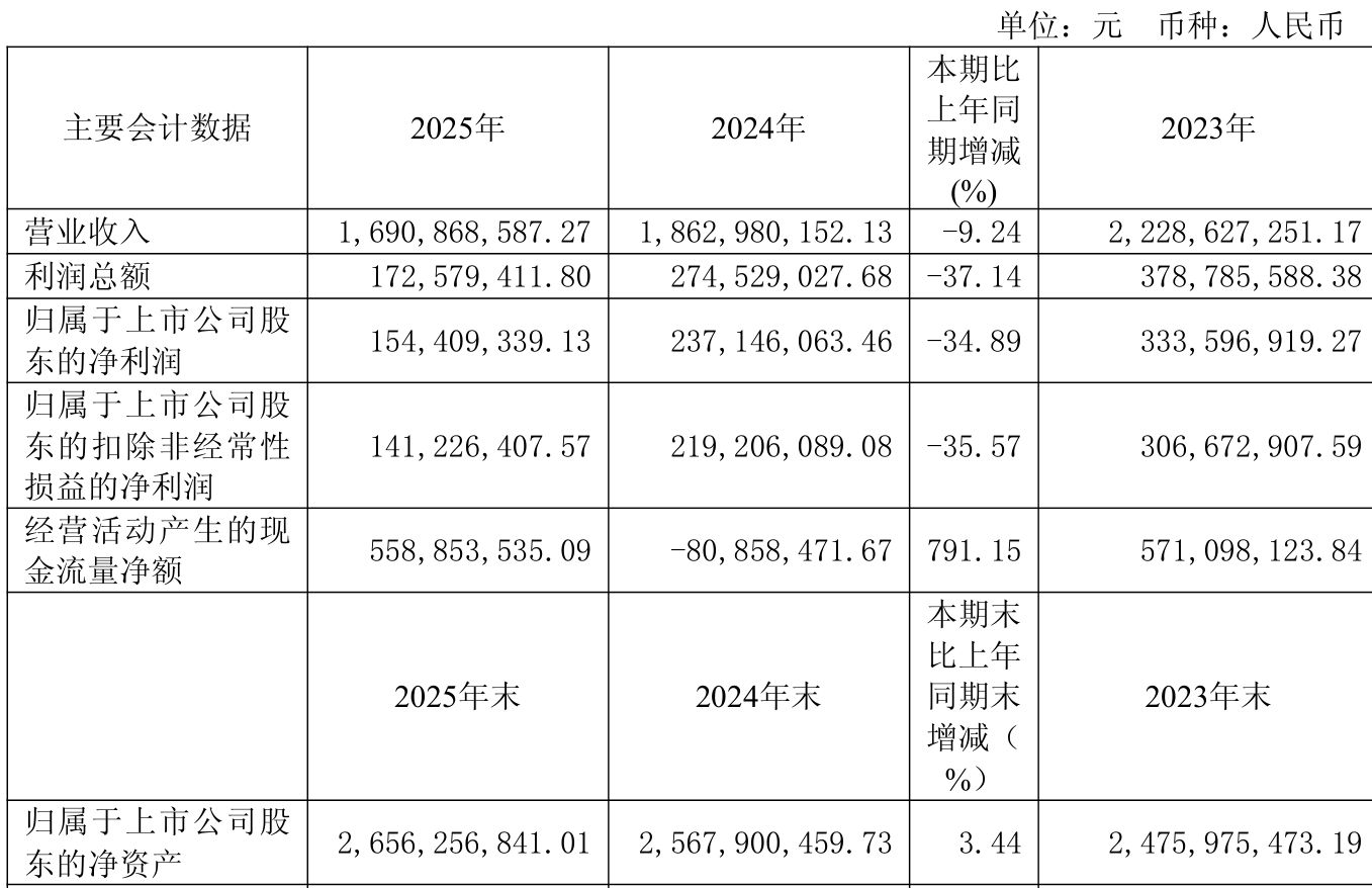 中证智能财讯四方科技(603339)4月22日披露2025年年度报告。2025年,公司实现营业总收入16.91亿元,同比下降9.24%;归母净利润1.54亿元,同比下降34.89%;扣非净利润1.41亿元,同比下降35.57%;经营活动产生的现金流量净额为5.59亿元,上年同期为-8085.85万元;报告期内,四方科技基本每股收益为0.5元,加权平均净资产收益率为5.94%。公司2025年度分配预案为:拟向全体股东每10股派现1.55元(含税)。