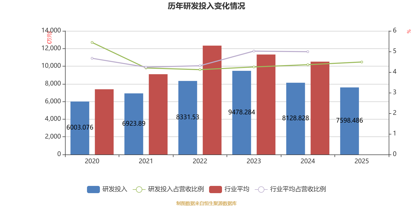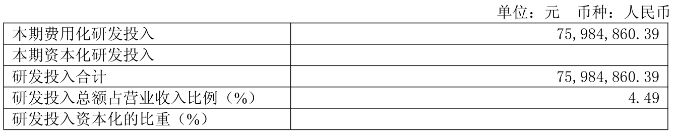 2025年全年,公司研发投入金额为7598.49万元,同比下降6.52%;研发投入占营业收入比例为4.49%,相比上年同期上升0.13个百分点。此外,公司全年研发投入资本化率为0%。