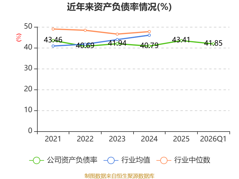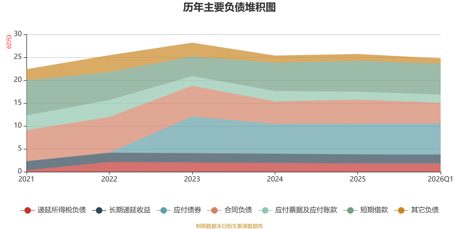 负债重大变化方面,截至2026年一季度末,公司合同负债较上年末减少13.87%,占公司总资产比重下降1.22个百分点;应付职工薪酬较上年末减少61.05%,占公司总资产比重下降0.31个百分点;其他流动负债较上年末减少22.8%,占公司总资产比重下降0.17个百分点;应付票据及应付账款较上年末增加5.13%,占公司总资产比重上升0.15个百分点。