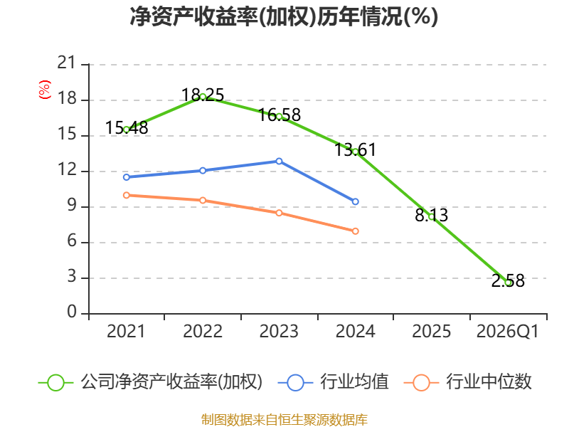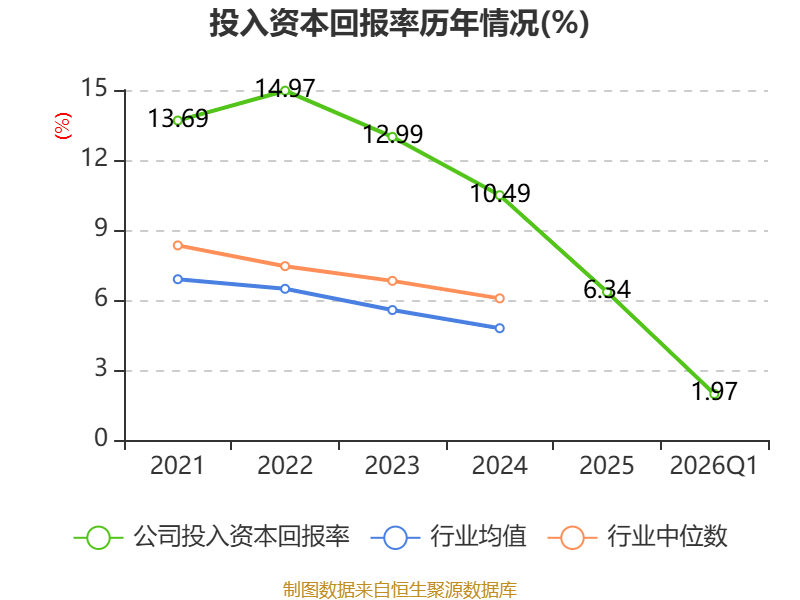 盈利能力方面, 2026年一季度公司加权平均净资产收益率为2.58%,同比下降1个百分点。公司2026年第一季度投入资本回报率为1.97%,较上年同期下降0.79个百分点。