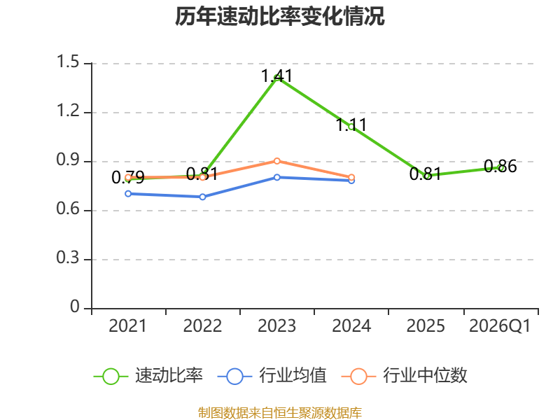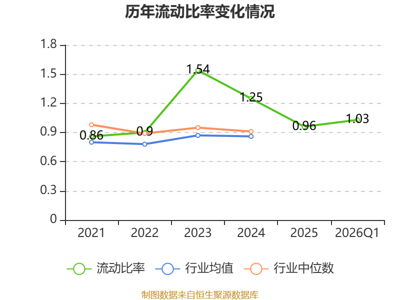 2026年第一季度,公司流动比率为1.03,速动比率为0.86。