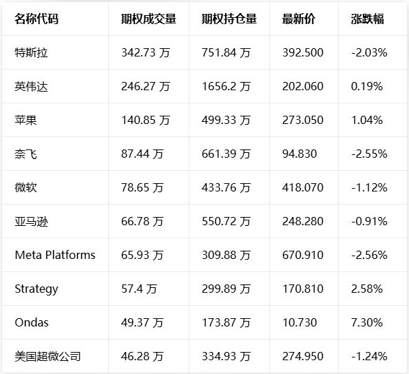 期权成交量前10的股票中,Meta Platforms的看跌/看涨成交量比最高,达到0.74。