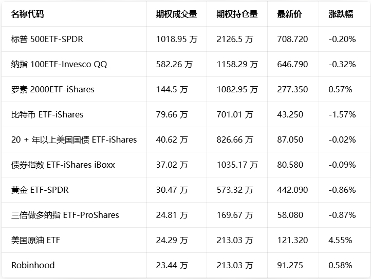 期权成交量排行榜