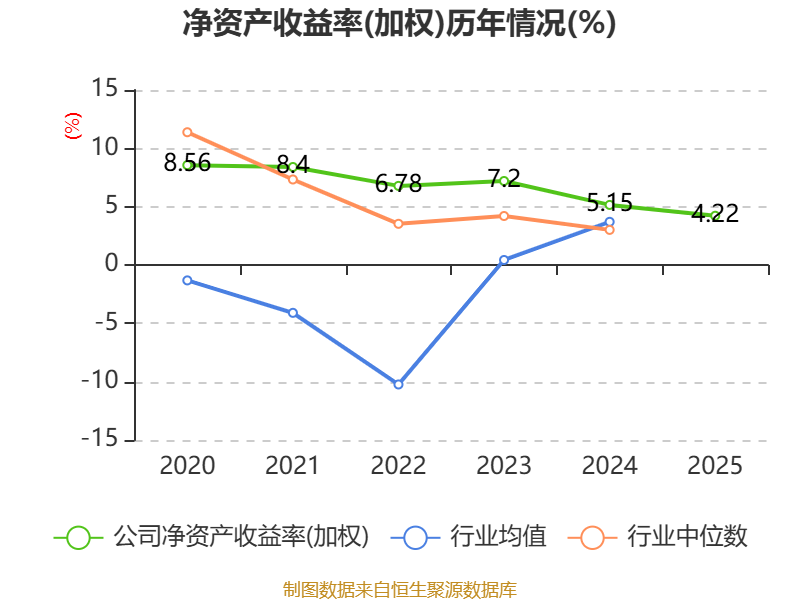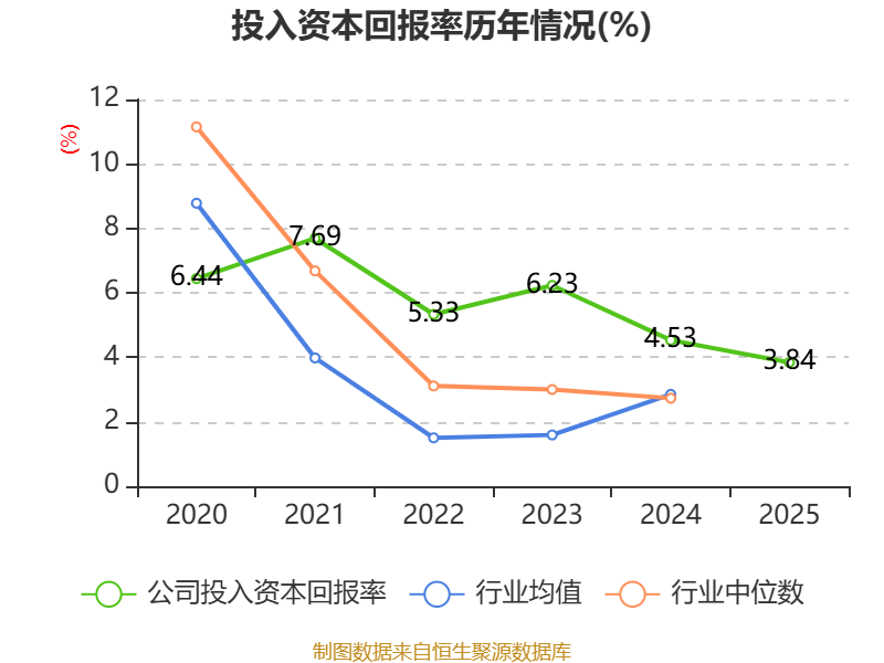 数据显示,2025年公司加权平均净资产收益率为4.22%,较上年同期下降0.93个百分点。公司2025年投入资本回报率为3.84%,较上年同期下降0.69个百分点。