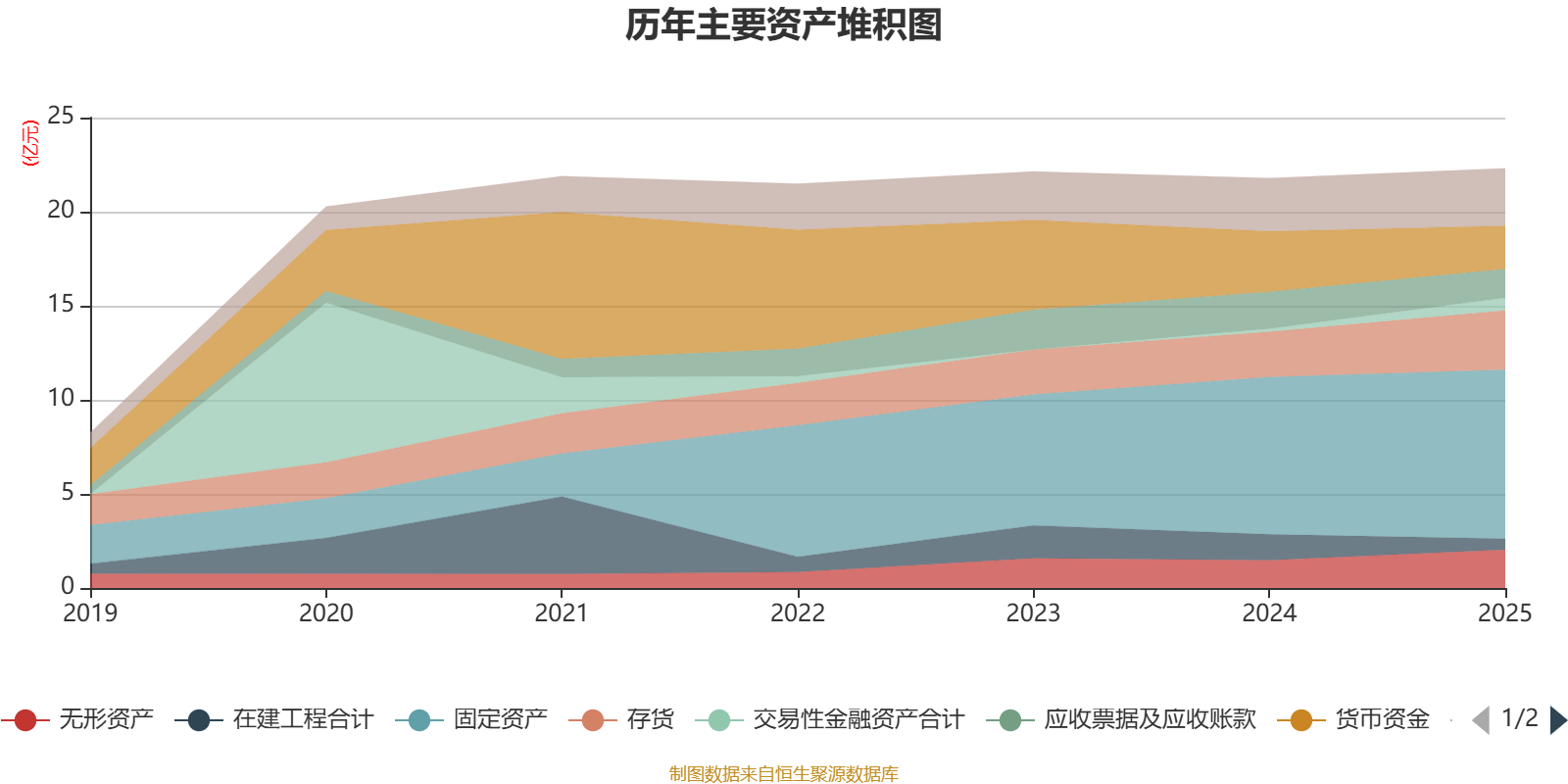 资产重大变化方面,截至2025年末,公司货币资金较上年末减少28.32%,占公司总资产比重下降4.41个百分点;在建工程合计较上年末减少57.73%,占公司总资产比重下降3.7个百分点;存货较上年末增加31%,占公司总资产比重上升3.08个百分点;无形资产较上年末增加37.99%,占公司总资产比重上升2.35个百分点。