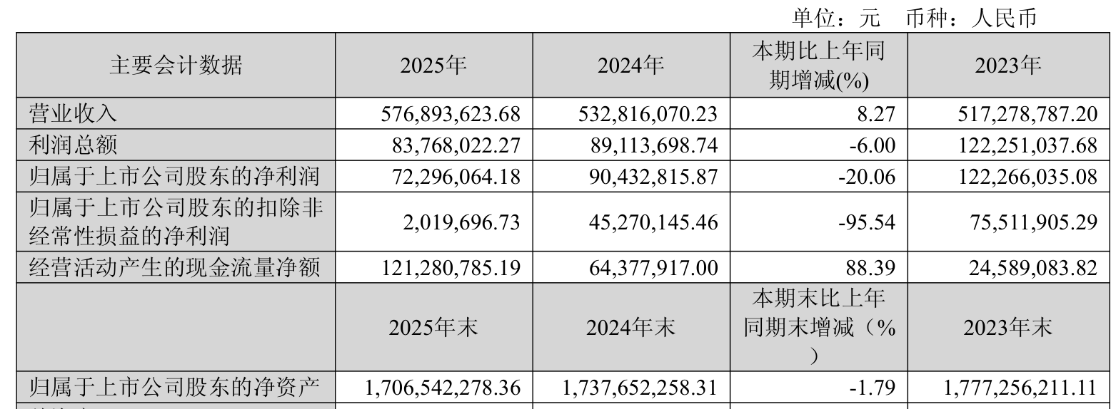 中证智能财讯奥来德(688378)4月22日披露2025年年度报告。2025年,公司实现营业总收入5.77亿元,同比增长8.27%;归母净利润7229.61万元,同比下降20.06%;扣非净利润201.97万元,同比下降95.54%;经营活动产生的现金流量净额为1.21亿元,同比增长88.39%;报告期内,奥来德基本每股收益为0.29元,加权平均净资产收益率为4.22%。公司2025年度分配预案为:拟向全体股东每10股派现2元(含税)。