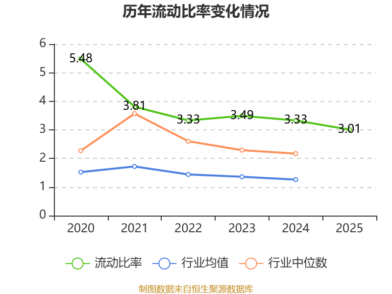 2025年,公司流动比率为3.01,速动比率为1.84。