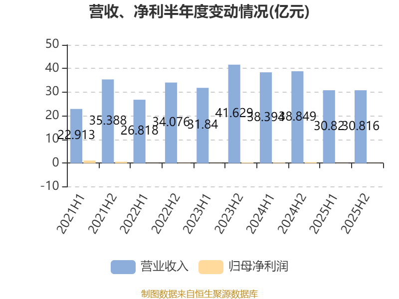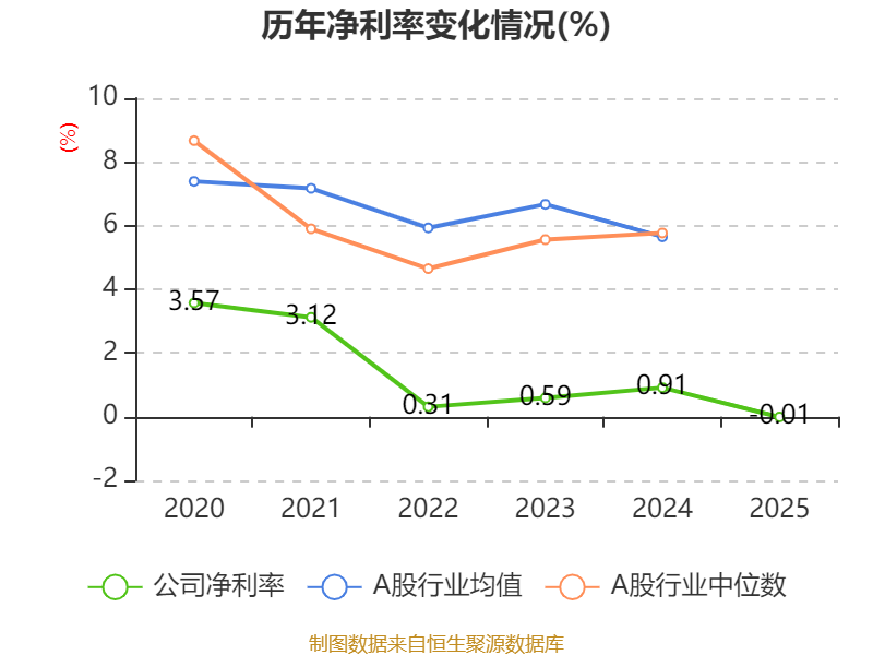 数据显示,2025年公司平均净资产收益率为-0.48%,较上年同期下降14.17个百分点。