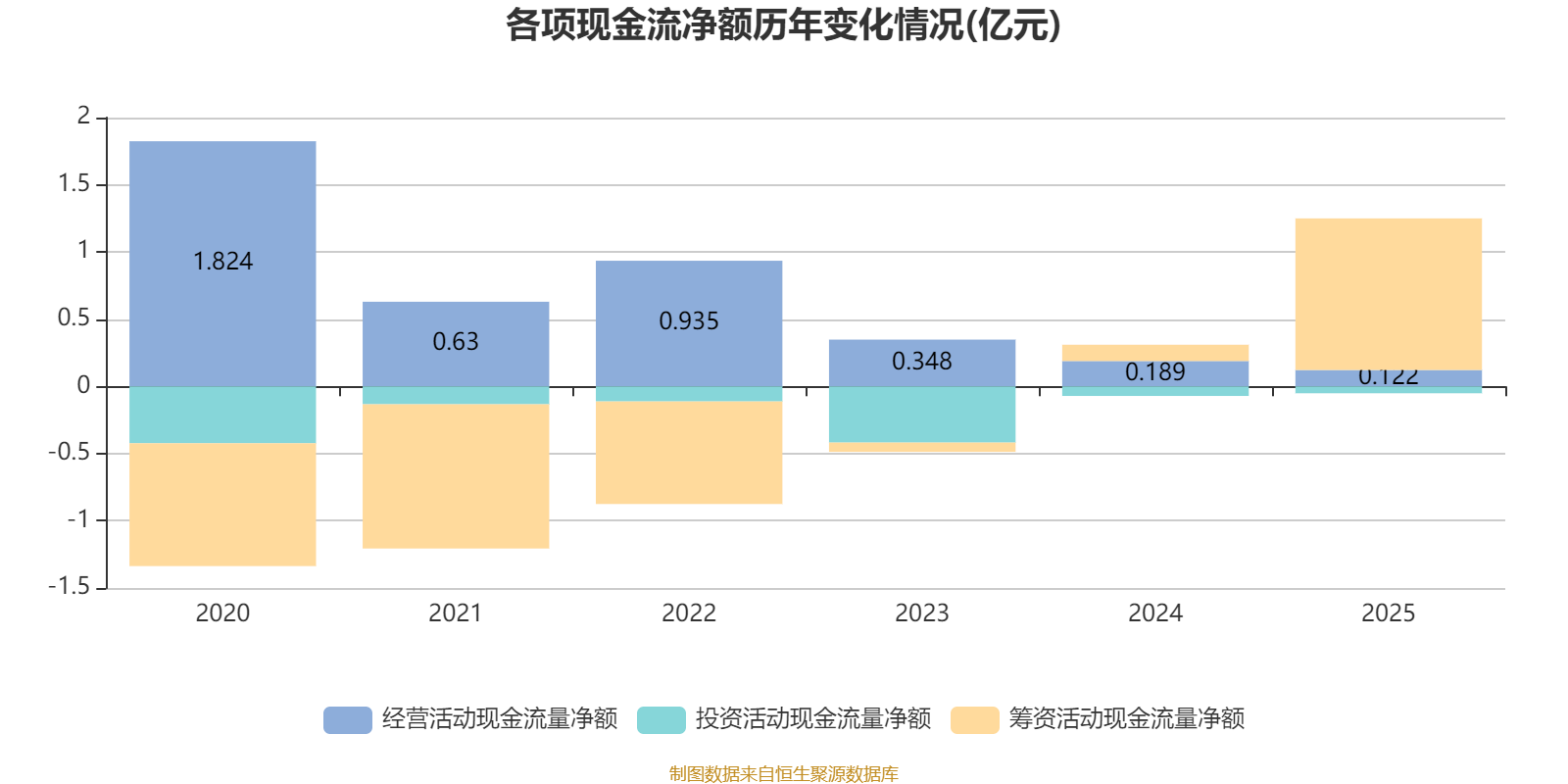 2025年,公司经营活动现金流净额为1219.7万元,同比下降35.4%;筹资活动现金流净额1.13亿元,同比增加1.01亿元;投资活动现金流净额-508.2万元,上年同期为-712.8万元。