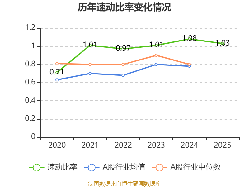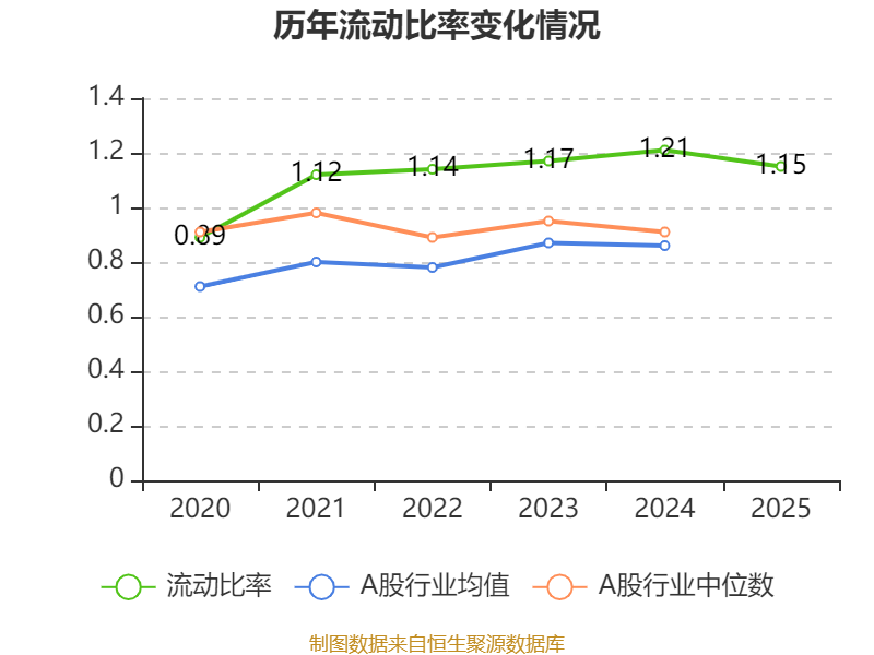 2025年,公司流动比率为1.15,速动比率为1.03。