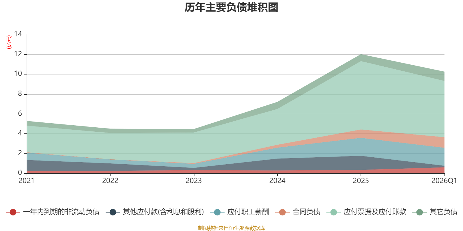 负债重大变化方面,截至2026年一季度末,公司应付票据及应付账款较上年末减少17.77%,占公司总资产比重下降2.48个百分点;其他应付款(含利息和股利)较上年末减少89.23%,占公司总资产比重下降2.28个百分点;一年内到期的非流动负债较上年末增加77.52%,占公司总资产比重上升0.44个百分点;合同负债较上年末增加26.64%,占公司总资产比重上升0.35个百分点。