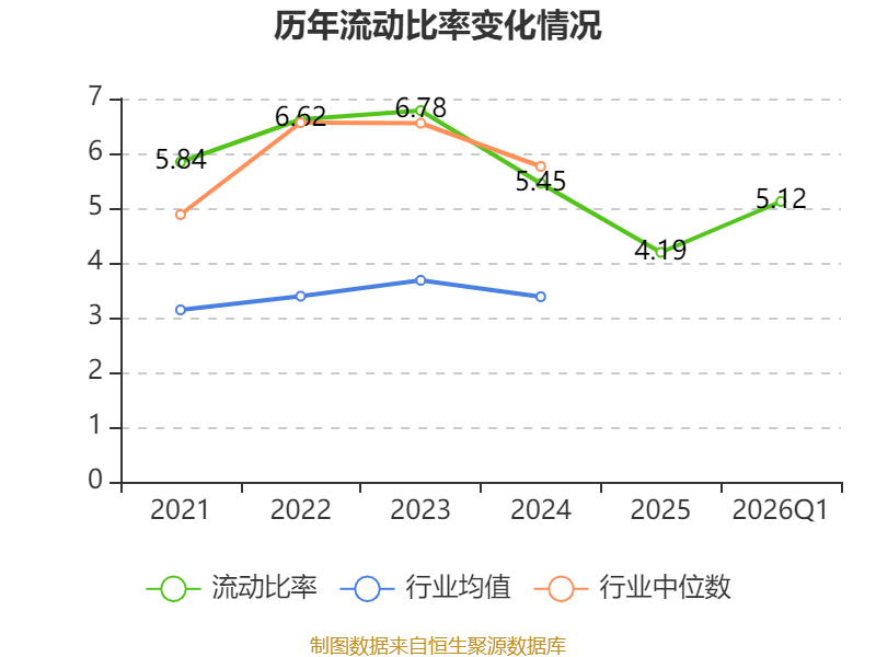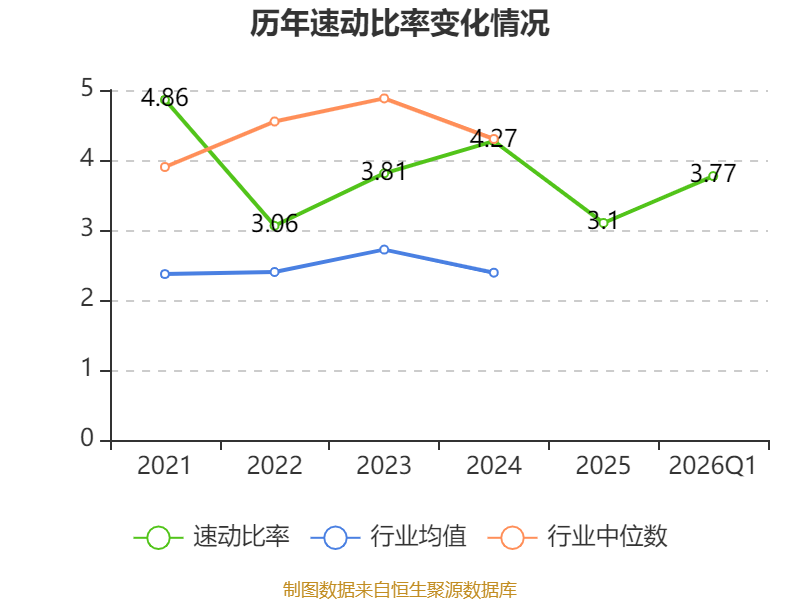 2026年第一季度,公司流动比率为5.12,速动比率为3.77。