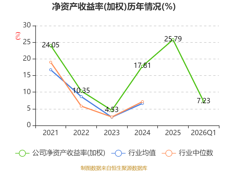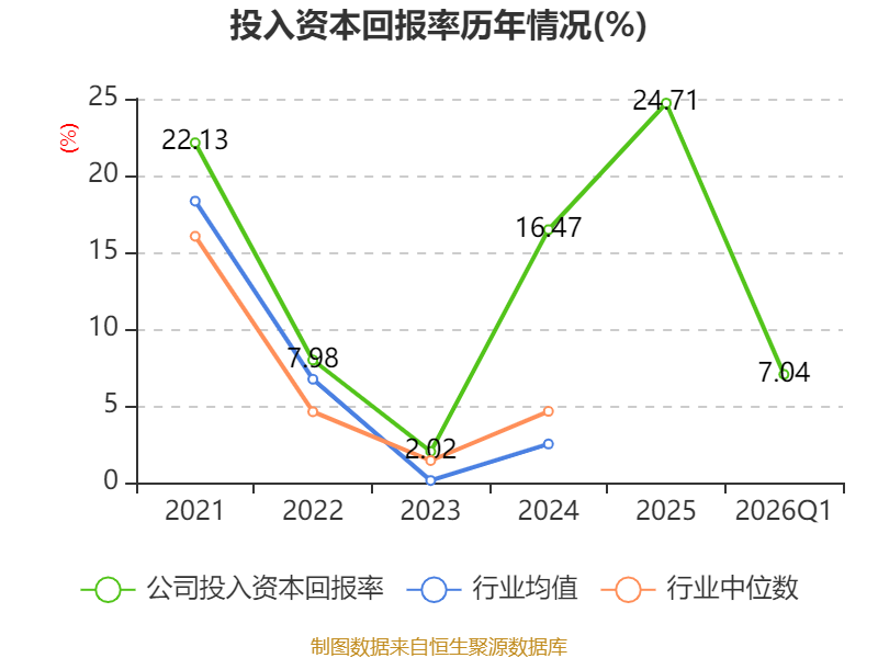盈利能力方面, 2026年一季度公司加权平均净资产收益率为7.23%,同比上升1.49个百分点。公司2026年第一季度投入资本回报率为7.04%,较上年同期上升1.71个百分点。