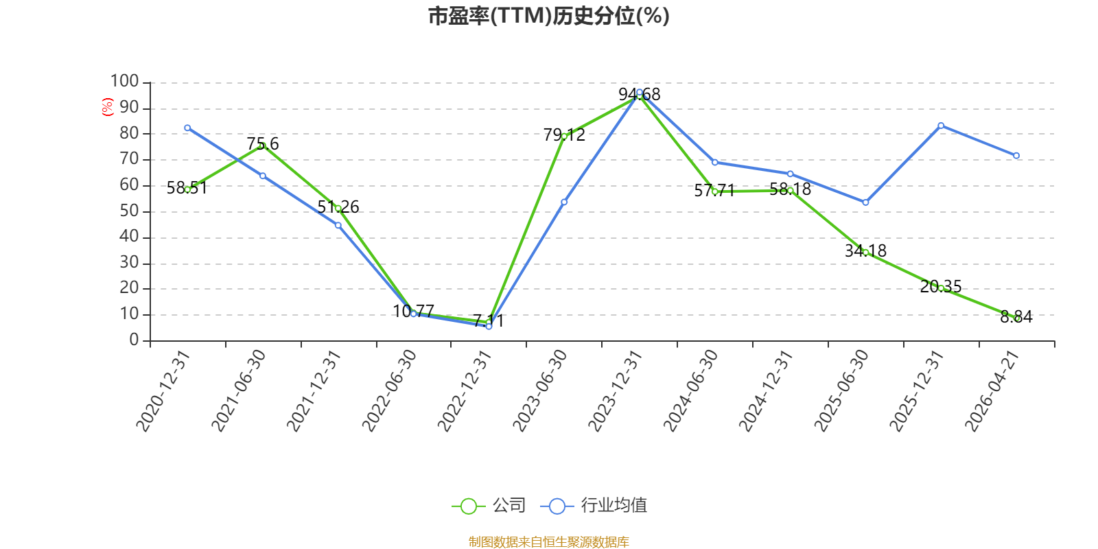 市盈率、市净率为负时,不显示当期分位数,会导致折线图中断。