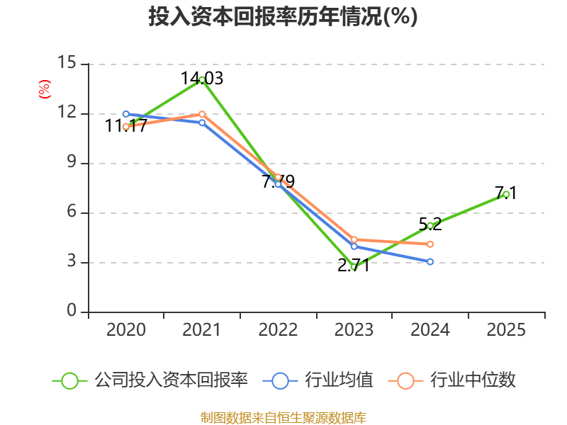 数据显示,2025年公司加权平均净资产收益率为7.3%,较上年同期上升1.9个百分点。公司2025年投入资本回报率为7.1%,较上年同期上升1.9个百分点。
