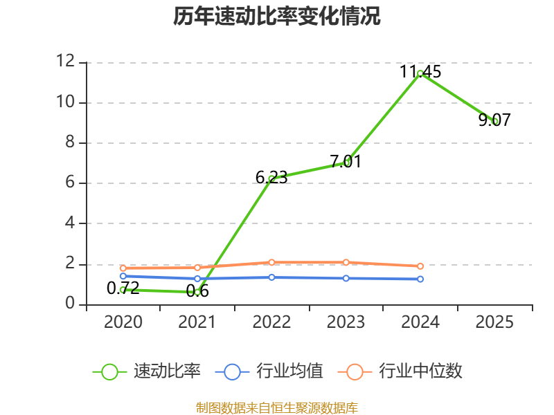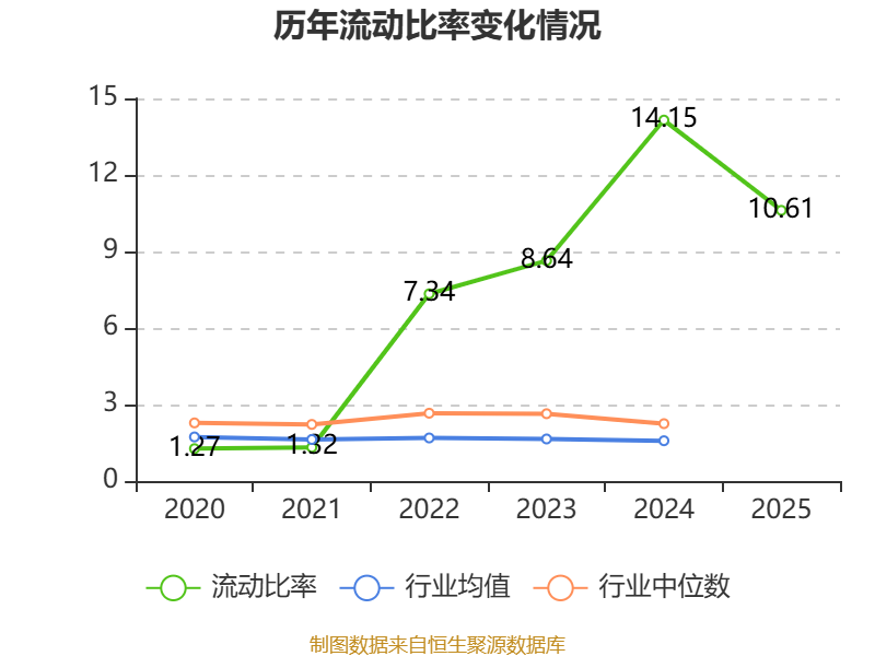 2025年,公司流动比率为10.61,速动比率为9.07。