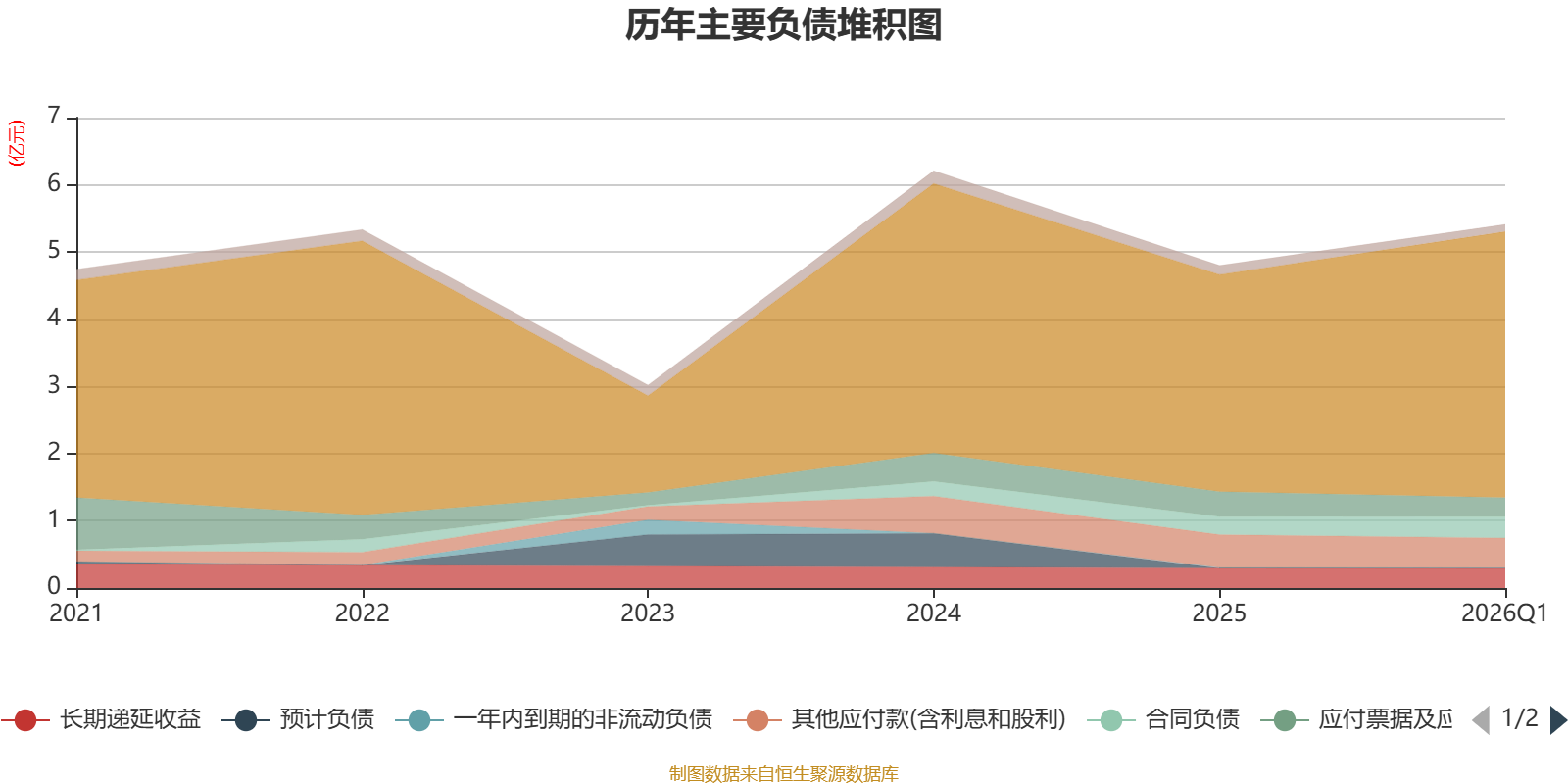 负债重大变化方面,截至2026年一季度末,公司短期借款较上年末增加22.51%,占公司总资产比重上升4.99个百分点;应付票据及应付账款较上年末减少23.62%,占公司总资产比重下降1.07个百分点;其他应付款(含利息和股利)较上年末减少9.23%,占公司总资产比重下降0.73个百分点;应付职工薪酬较上年末减少49%,占公司总资产比重下降0.44个百分点。