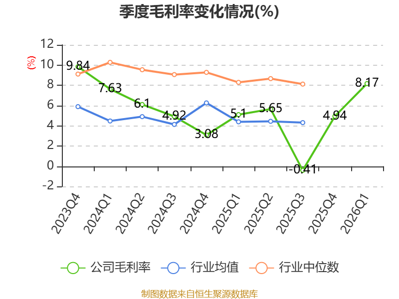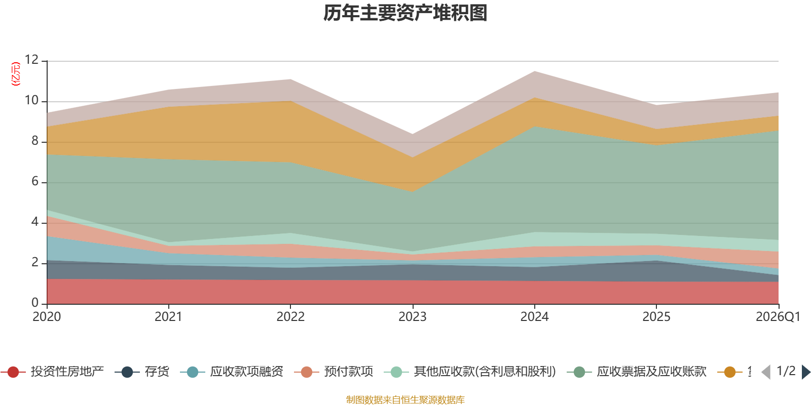 资产重大变化方面,截至2026年一季度末,公司存货较上年末减少68.37%,占公司总资产比重下降7.48个百分点;应收票据及应收账款较上年末增加23.62%,占公司总资产比重上升7.21个百分点;预付款项较上年末增加78.03%,占公司总资产比重上升3.23个百分点;货币资金较上年末减少9.5%,占公司总资产比重下降1.23个百分点。