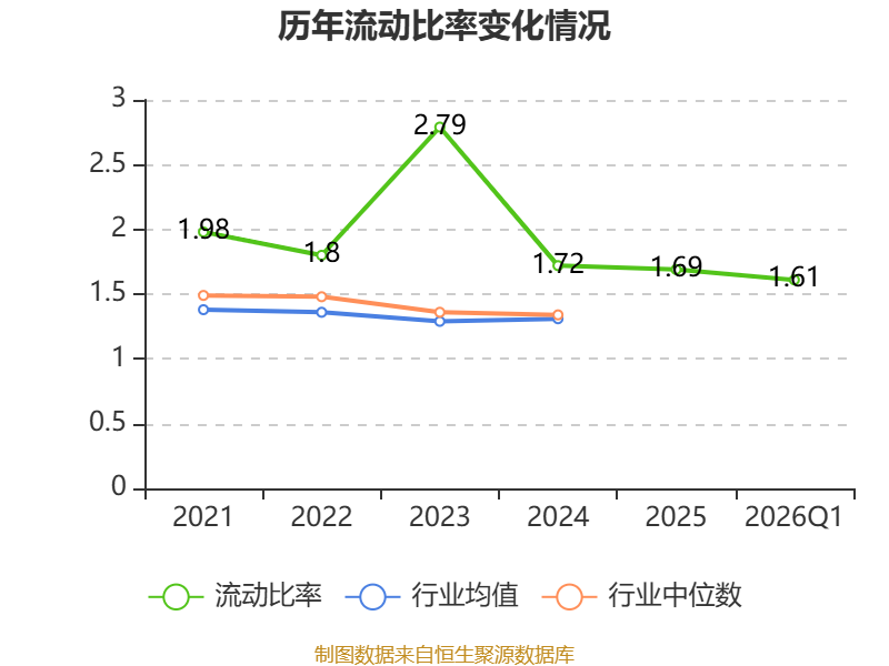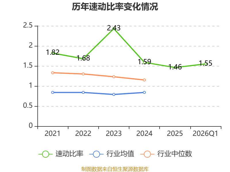 2026年第一季度,公司流动比率为1.61,速动比率为1.55。