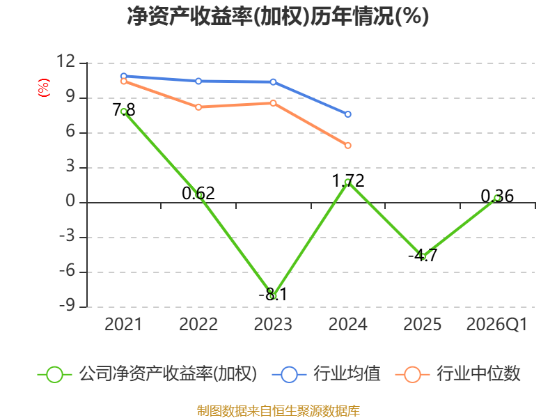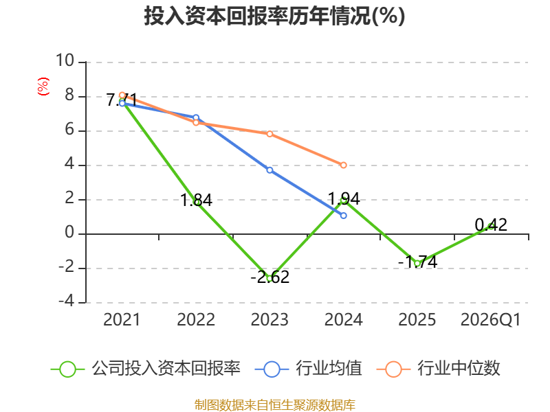 盈利能力方面, 2026年一季度公司加权平均净资产收益率为0.36%,同比下降0.01个百分点。公司2026年第一季度投入资本回报率为0.42%,较上年同期下降0.14个百分点。