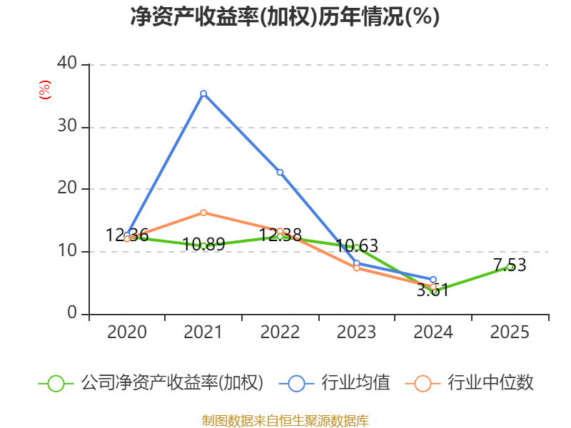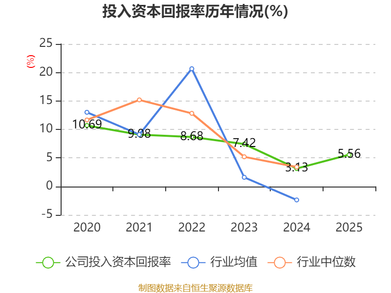 数据显示,2025年公司加权平均净资产收益率为7.53%,较上年同期上升3.92个百分点。公司2025年投入资本回报率为5.56%,较上年同期上升2.43个百分点。