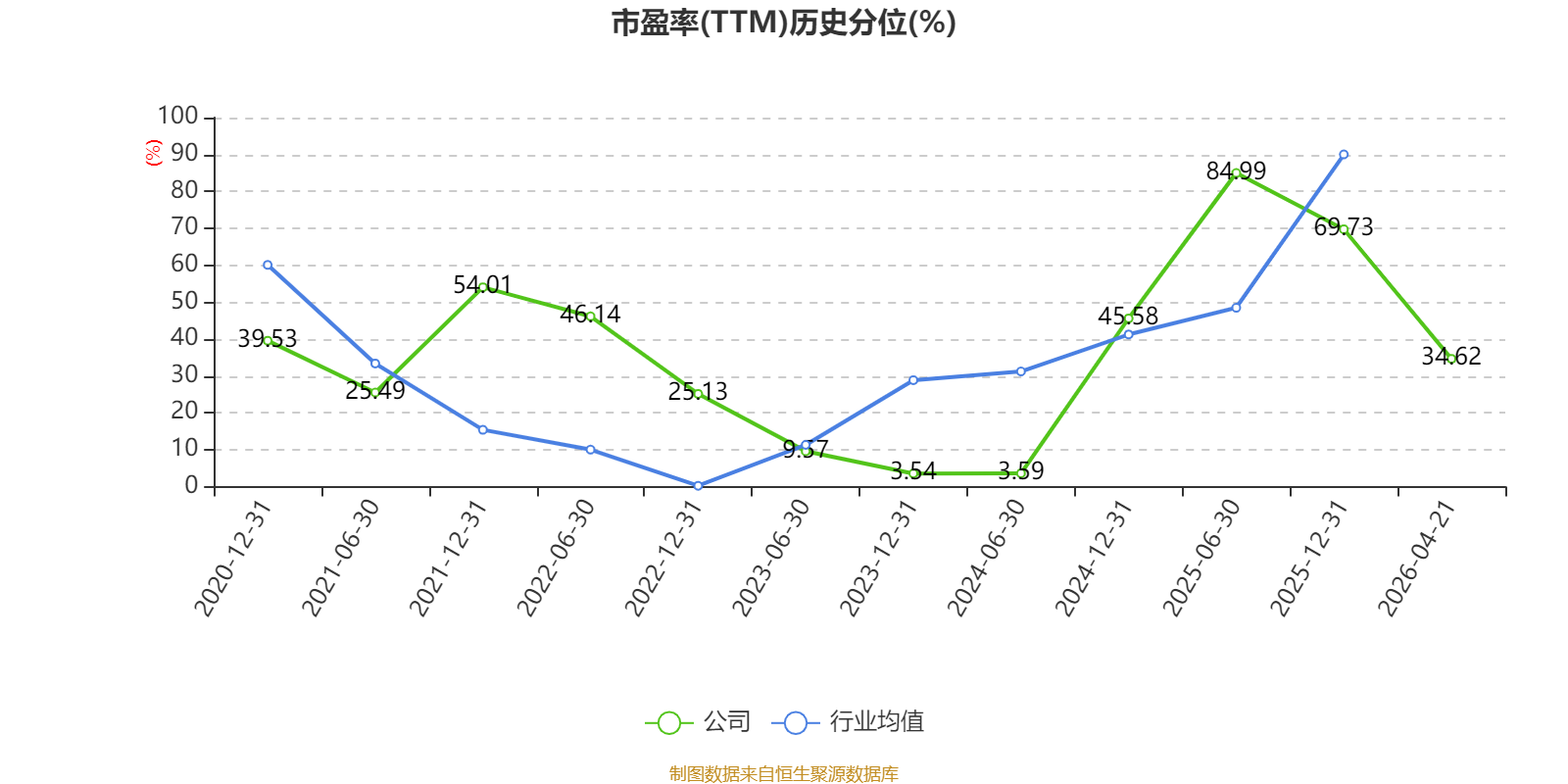 市盈率、市净率为负时,不显示当期分位数,会导致折线图中断。