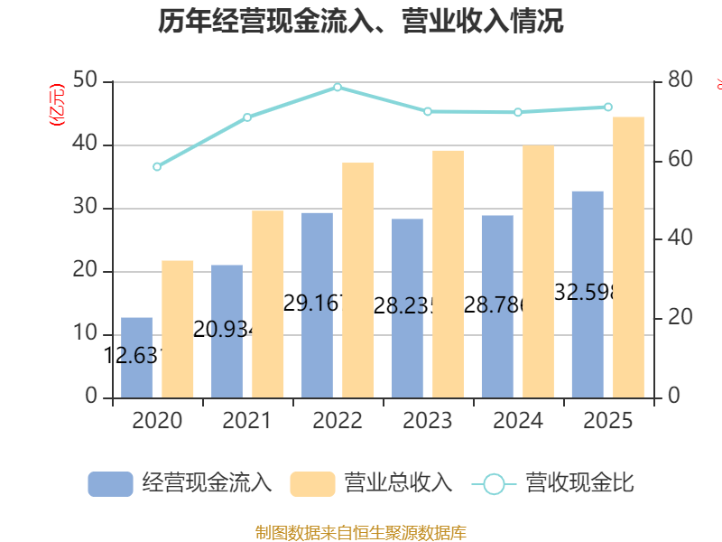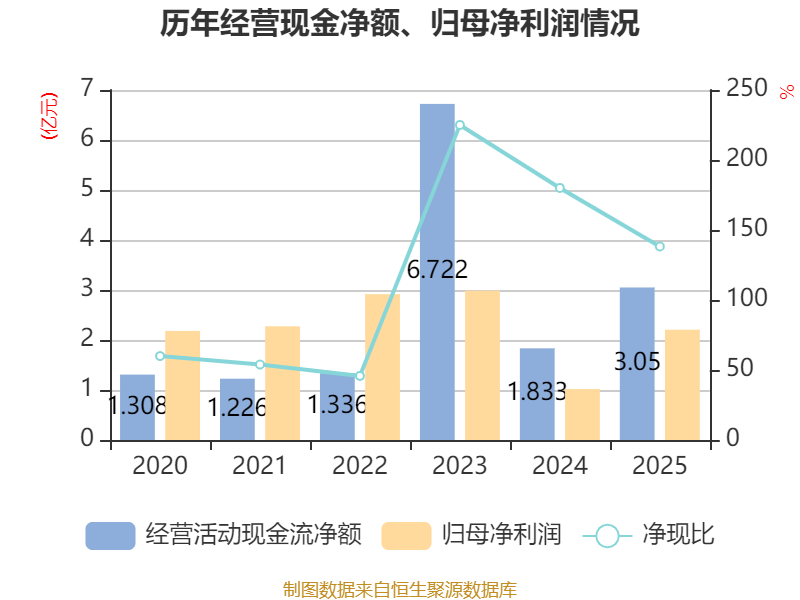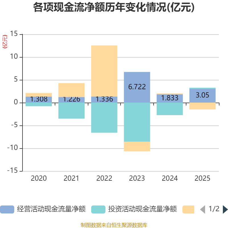 截至2025年,公司经营活动现金流净额为3.05亿元,同比增长66.33%;筹资活动现金流净额-1.5亿元,同比减少1.71亿元;投资活动现金流净额2031.43万元,上年同期为-2.75亿元。