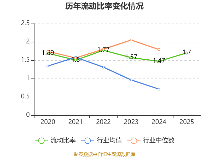2025年,公司流动比率为1.7,速动比率为1.5。