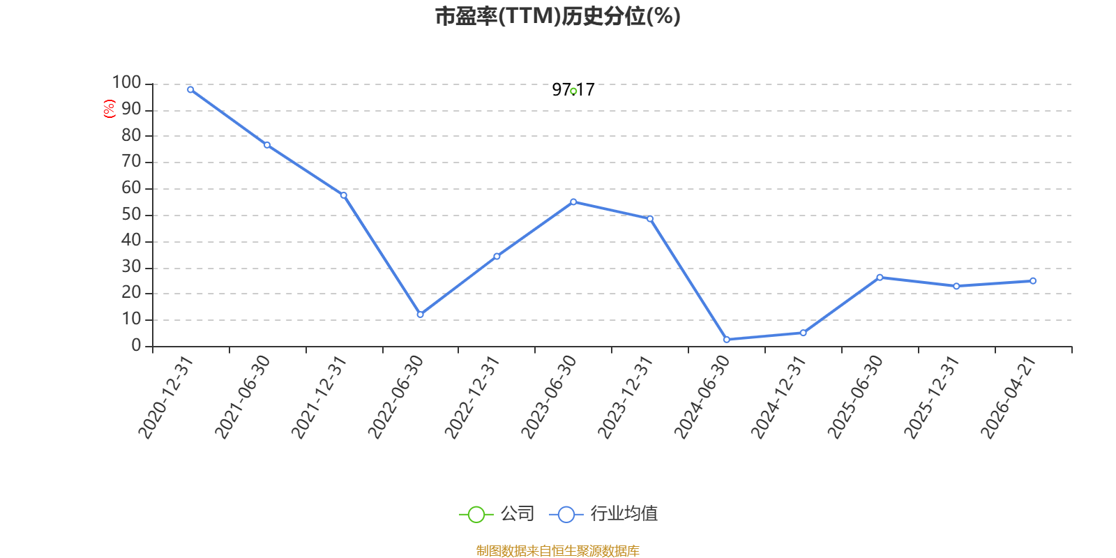市盈率、市净率为负时,不显示当期分位数,会导致折线图中断。