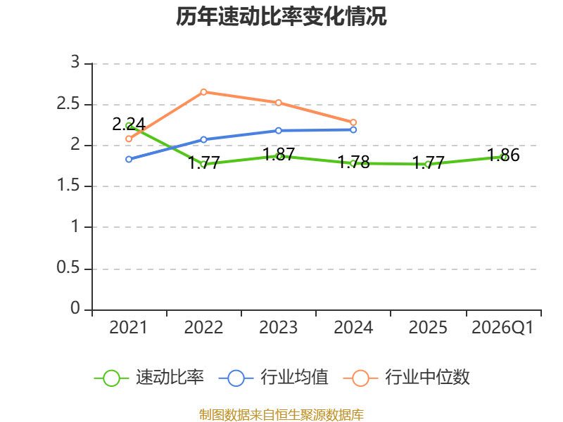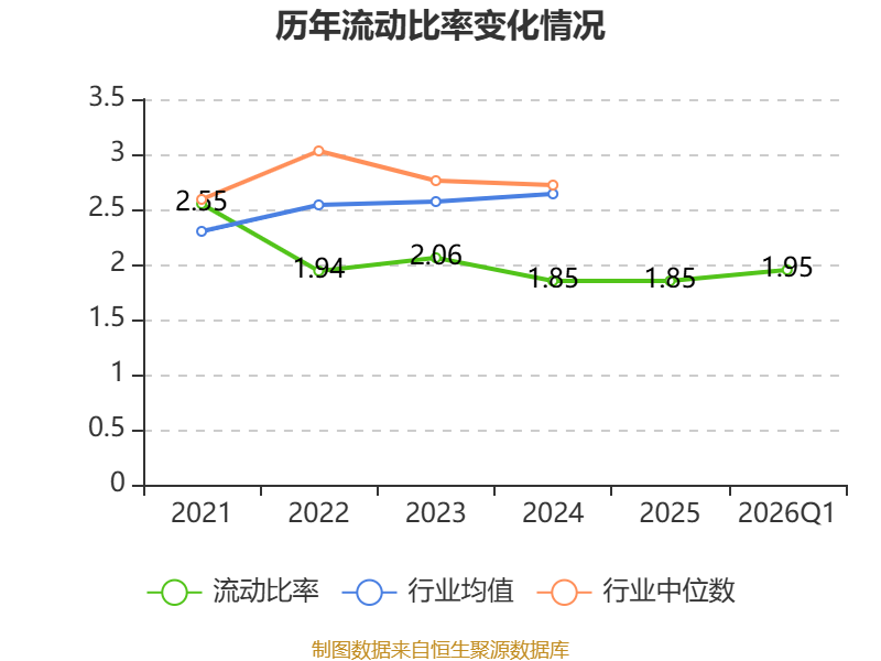 2026年第一季度,公司流动比率为1.95,速动比率为1.86。