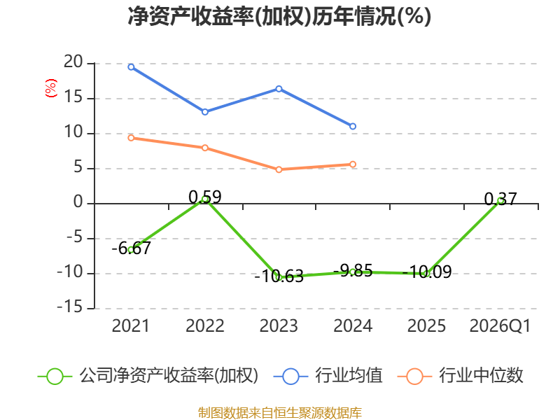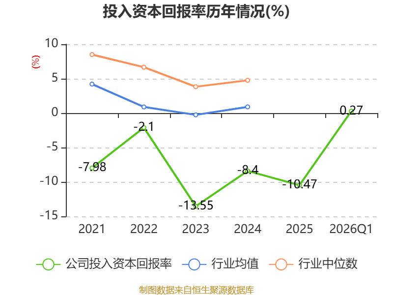 盈利能力方面, 2026年一季度公司加权平均净资产收益率为0.37%,同比上升2.67个百分点。公司2026年第一季度投入资本回报率为0.27%,较上年同期上升2.8个百分点。
