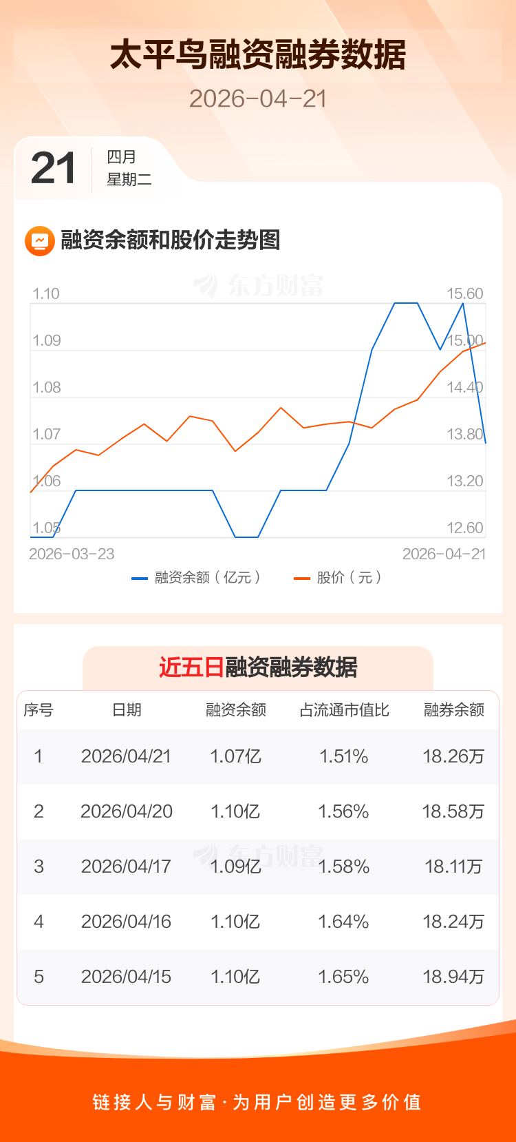 交易所最新数据显示,太平鸟于2026年4月21日获融资买入264.22万元,融资偿还604.79万元,当日融资净偿还340.57万元。目前,该股融资余额1.07亿,占流通市值比例为1.51%。