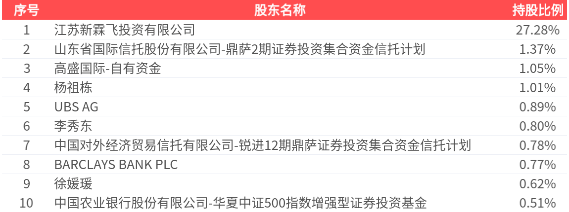 公司股东户数为2.70万户,前十大股东持股数量为6959.58万股,占总股本比例为35.10%,前十大股东持股情况如下: