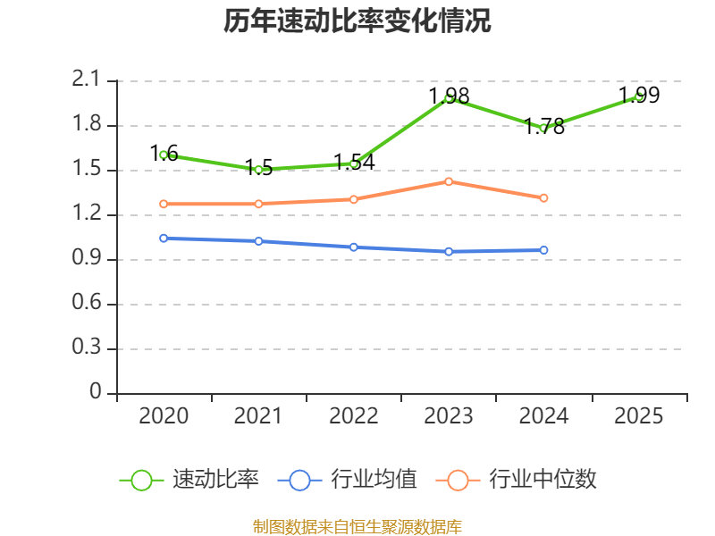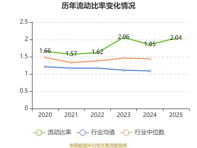 2025年,公司流动比率为2.04,速动比率为1.99。