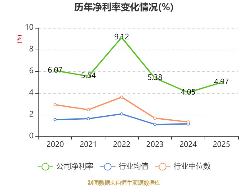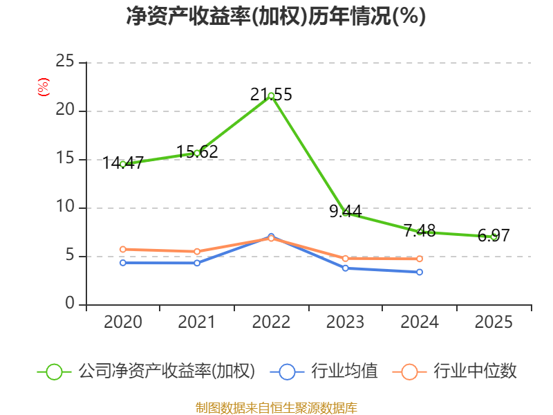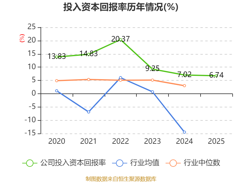 数据显示,2025年公司加权平均净资产收益率为6.97%,较上年同期下降0.51个百分点。公司2025年投入资本回报率为6.74%,较上年同期下降0.28个百分点。