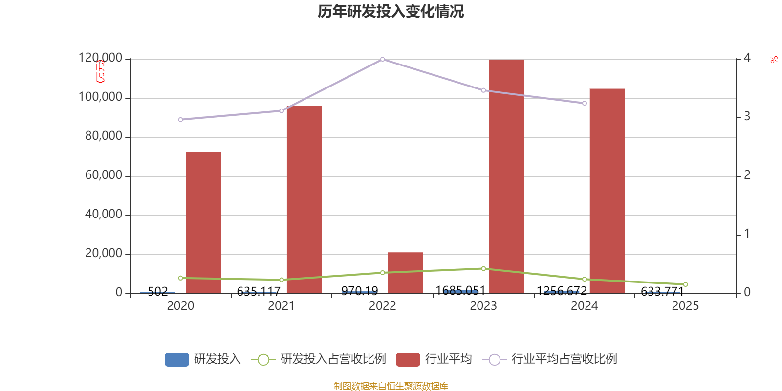 2025年全年,公司研发投入金额为633.77万元,同比下降49.57%;研发投入占营业收入比例为0.15%,相比上年同期下降0.09个百分点。此外,公司全年研发投入资本化率为0%。