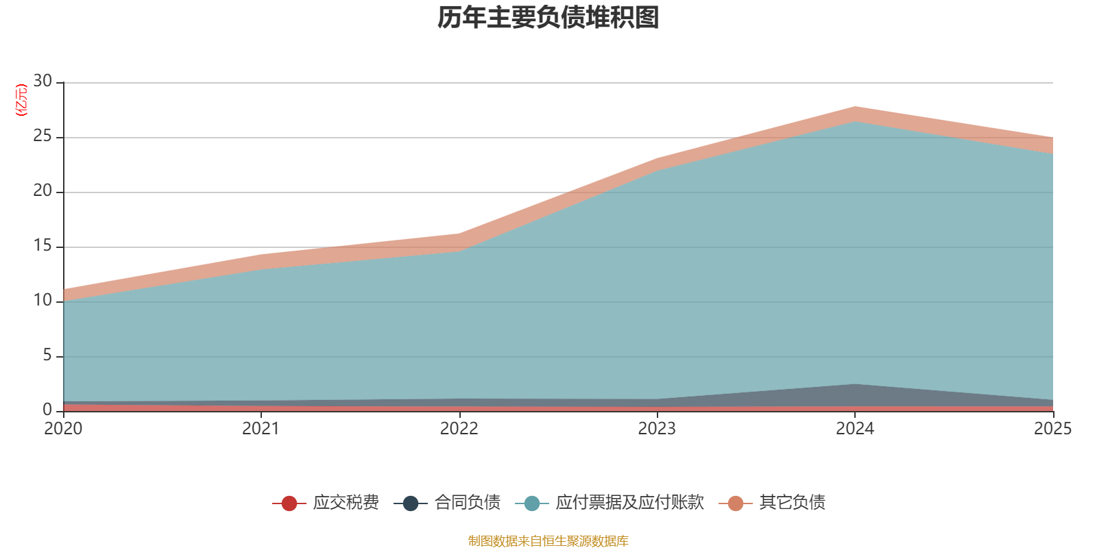负债重大变化方面,截至2025年末,公司合同负债较上年末减少70.72%,占公司总资产比重下降2.52个百分点;应付票据及应付账款较上年末减少6.32%,占公司总资产比重下降1.5个百分点;其他流动负债较上年末增加32.59%,占公司总资产比重上升0.3个百分点;其他应付款(含利息和股利)较上年末减少25.13%,占公司总资产比重下降0.13个百分点。